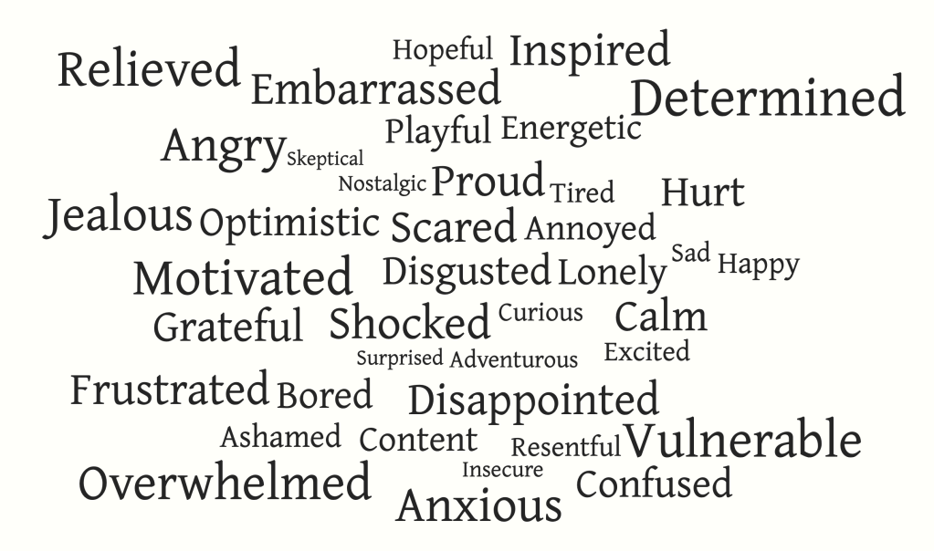 Here are some emotions that can help expand your child’s emotional vocabulary: